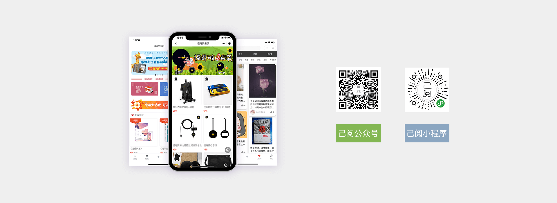 己阅借助小程序平台,通过与DK China、天美工作室、怪奇鹅等品牌进行深度合作,提供丰富的书籍以及各类文创产品。